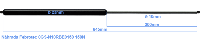 Náhrada plynové pružiny za Febrotec 0GS-N10RBE0150 150 N. Závit: M8. Značka: HAHN.