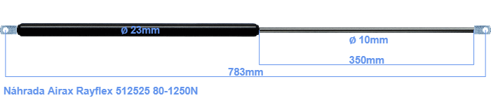 Náhrada plynové pružiny za Airax Rayflex 512525 80-1250 N. Tloušťka oka je 10 mm a průměr díry je 8.1 mm. Značka: HAHN.
