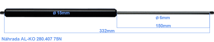 Náhrada plynové pružiny za AL-KO 280.407 75 N. Závit: M5. Značka: HAHN.