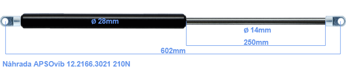 Náhrada plynové pružiny za APSOvib 12.2166.3021 210 N. Tloušťka oka je 10 mm a průměr díry je 10.1 mm. Značka: HAHN.
