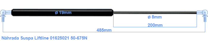 Náhrada plynové pružiny za Suspa Liftline 01625021 50-675 N. Určeno pro kuličku o průměru 10 mm. Obsahuje kuličku. Značka: HAHN.