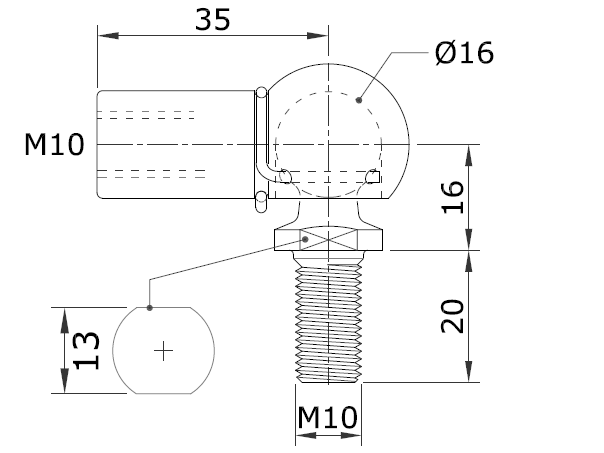 Tyčka této plynové pružiny je vyrobena z nerezové oceli AISI 303, tělo válce z nerezové oceli AISI 304.